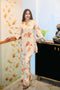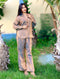 Vibrant Blue Double-Shaded Co-Ord Set in luxurious Fendi tissue fabric with a golden shine. Includes a balloon-sleeve shirt, flared pants with pockets, and a matching inner—perfect for festivals, parties, and special events.