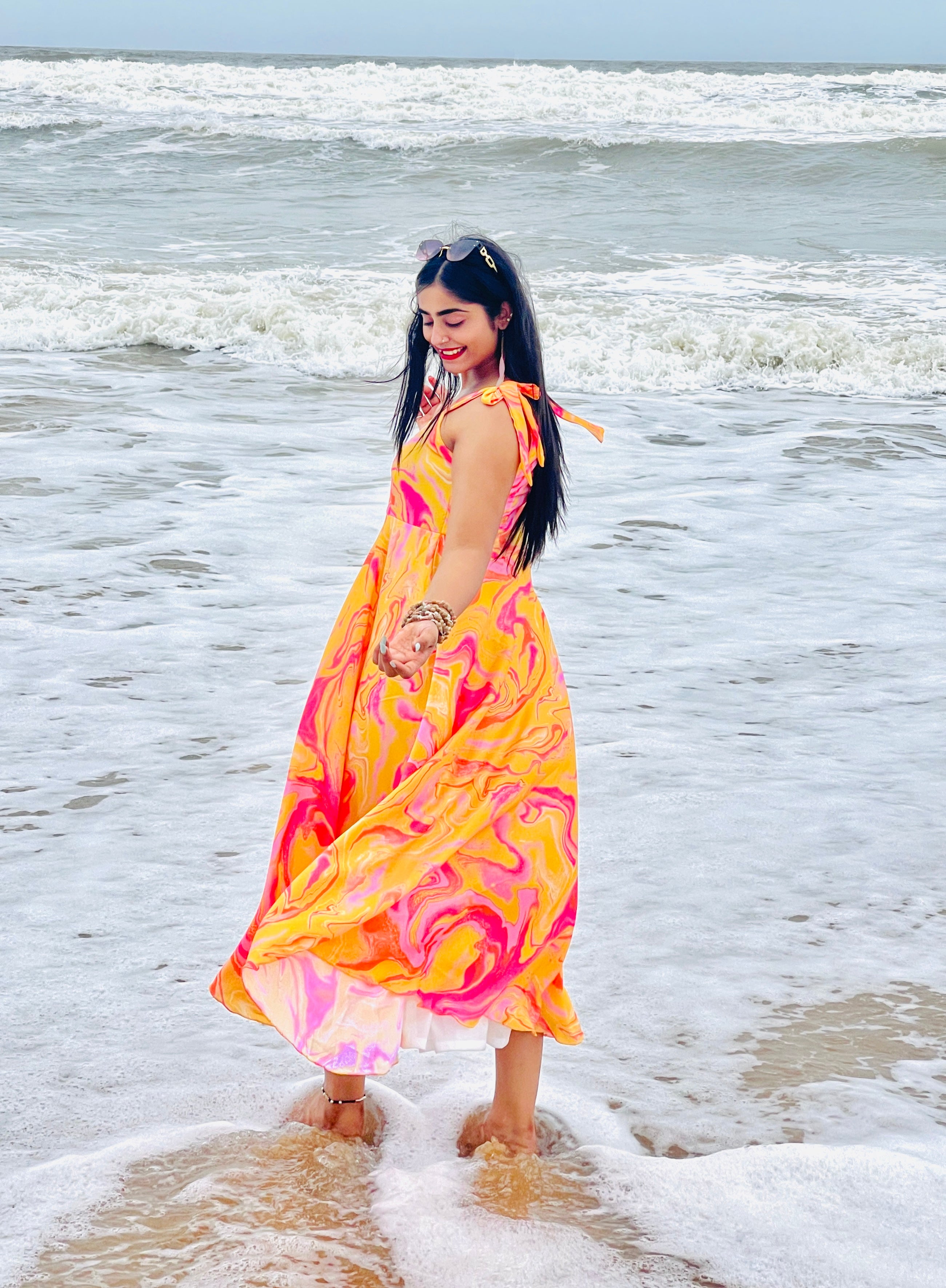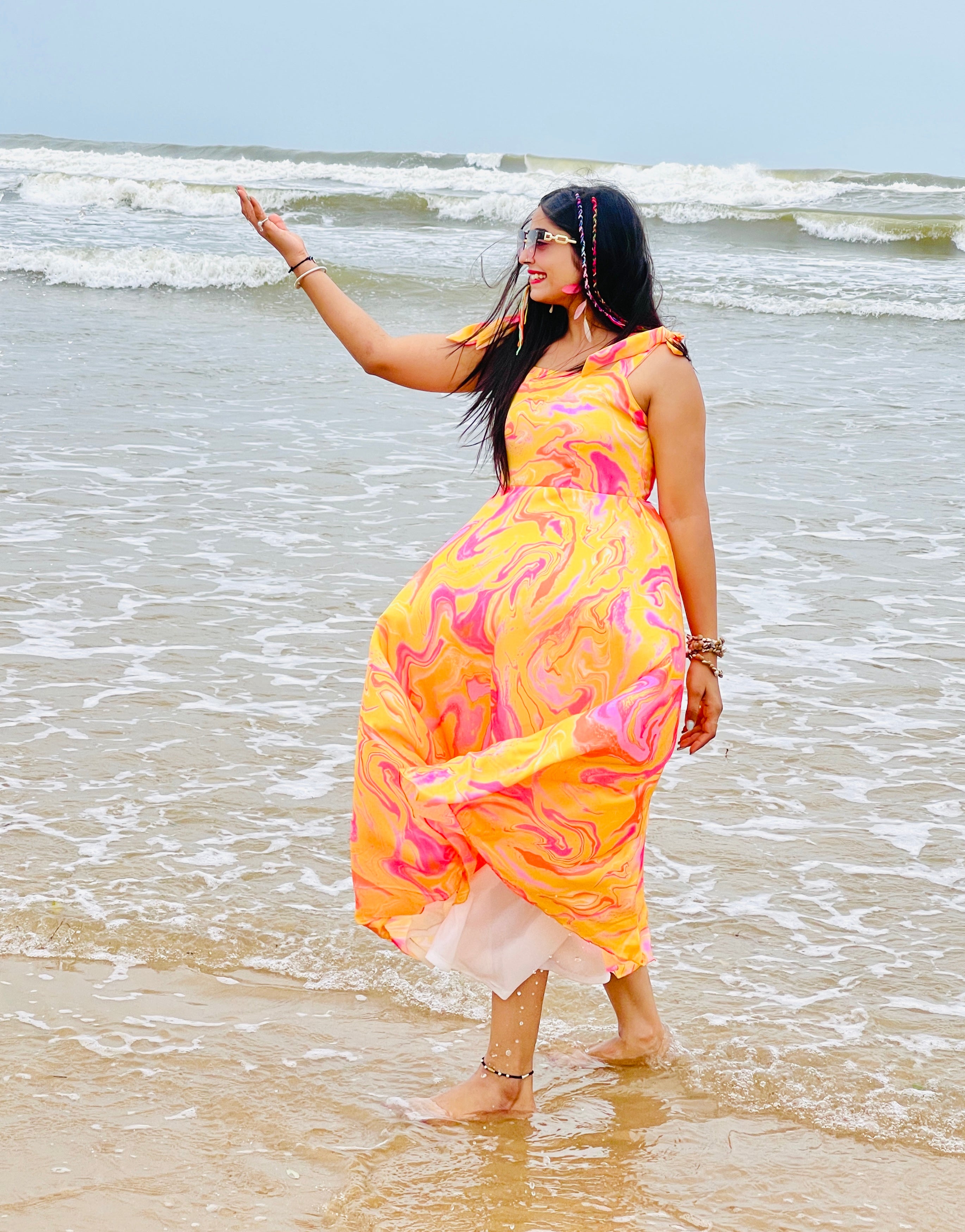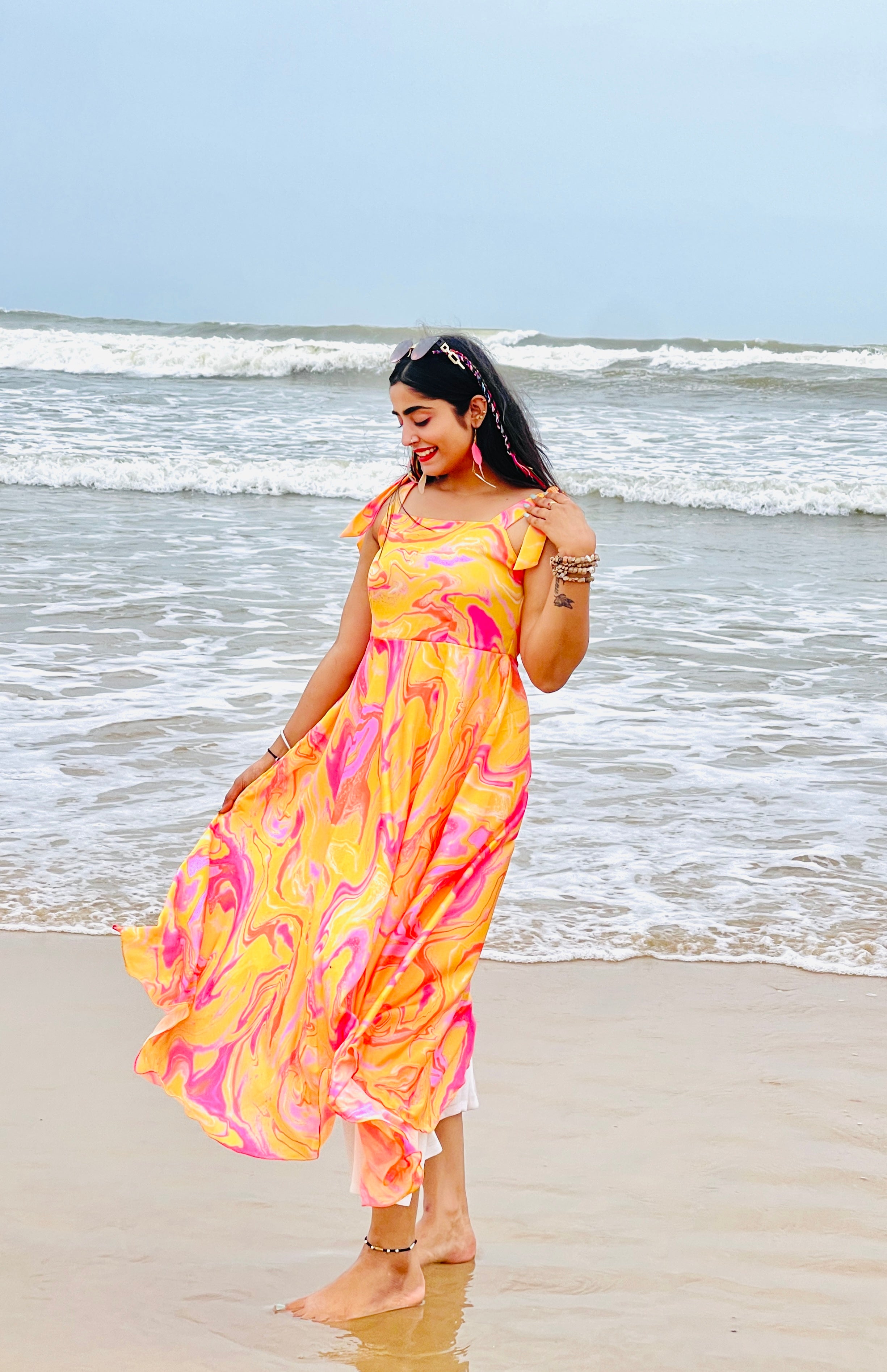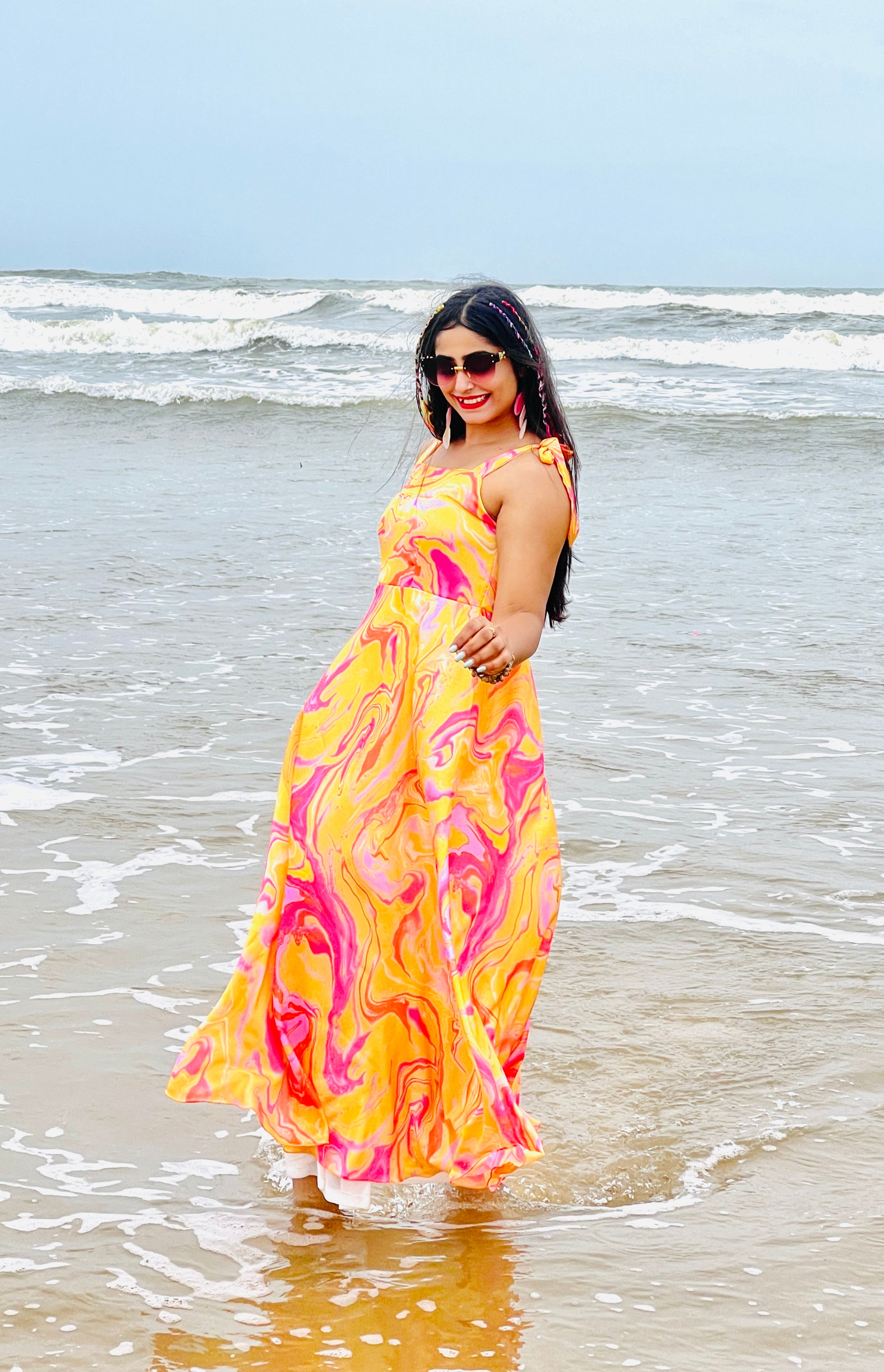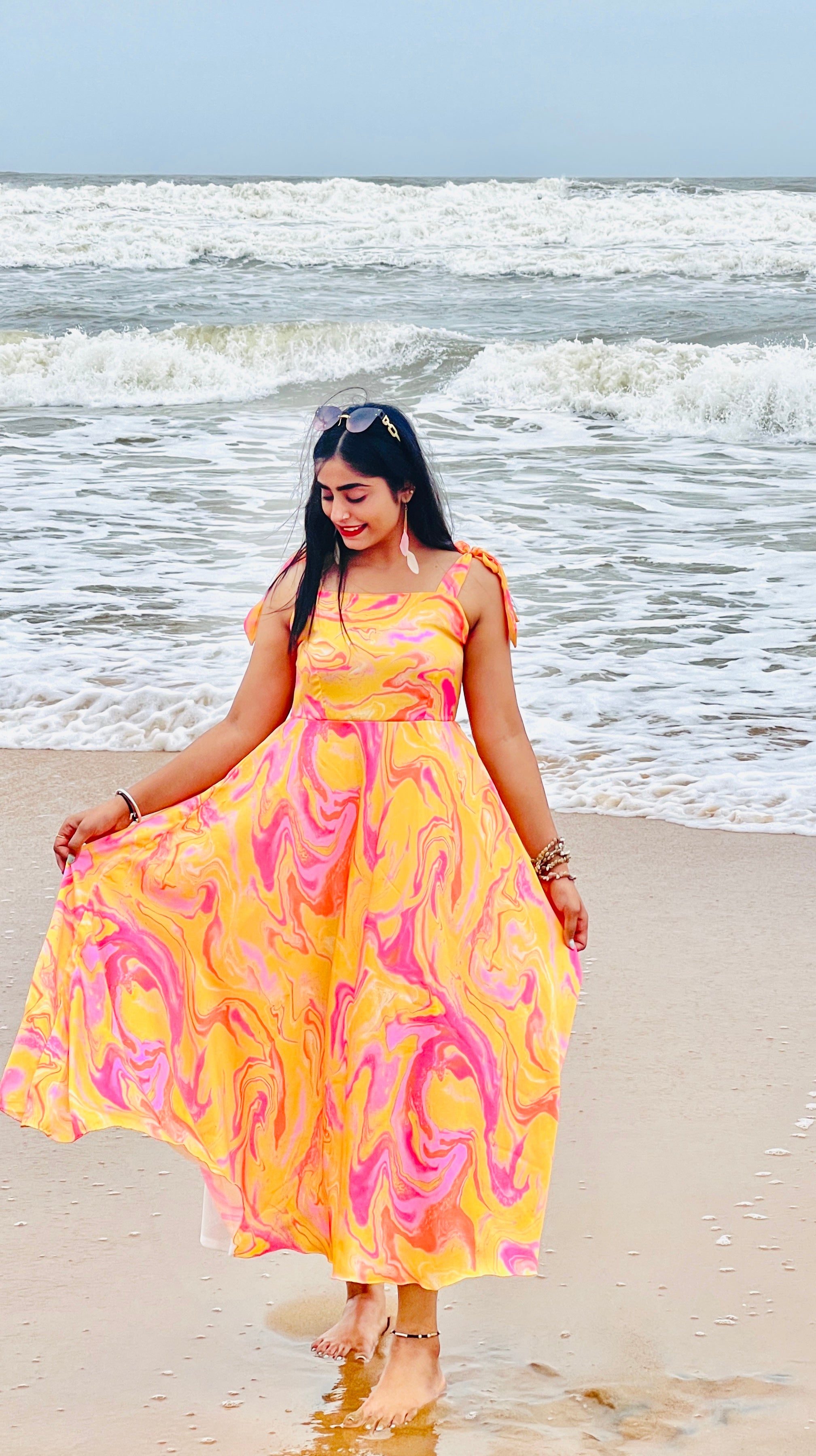 Elevate your style with this premium quality maxi dress in a vibrant bright yellow shade. Made from soft, comfortable modal satin fabric, it offers a luxurious feel perfect for all-day wear. The elegant, knotted sleeves add a chic touch, making it ideal for parties, brunch dates, or casual events. This dress combines comfort and sophistication, ensuring you stand out with effortless grace wherever you go.